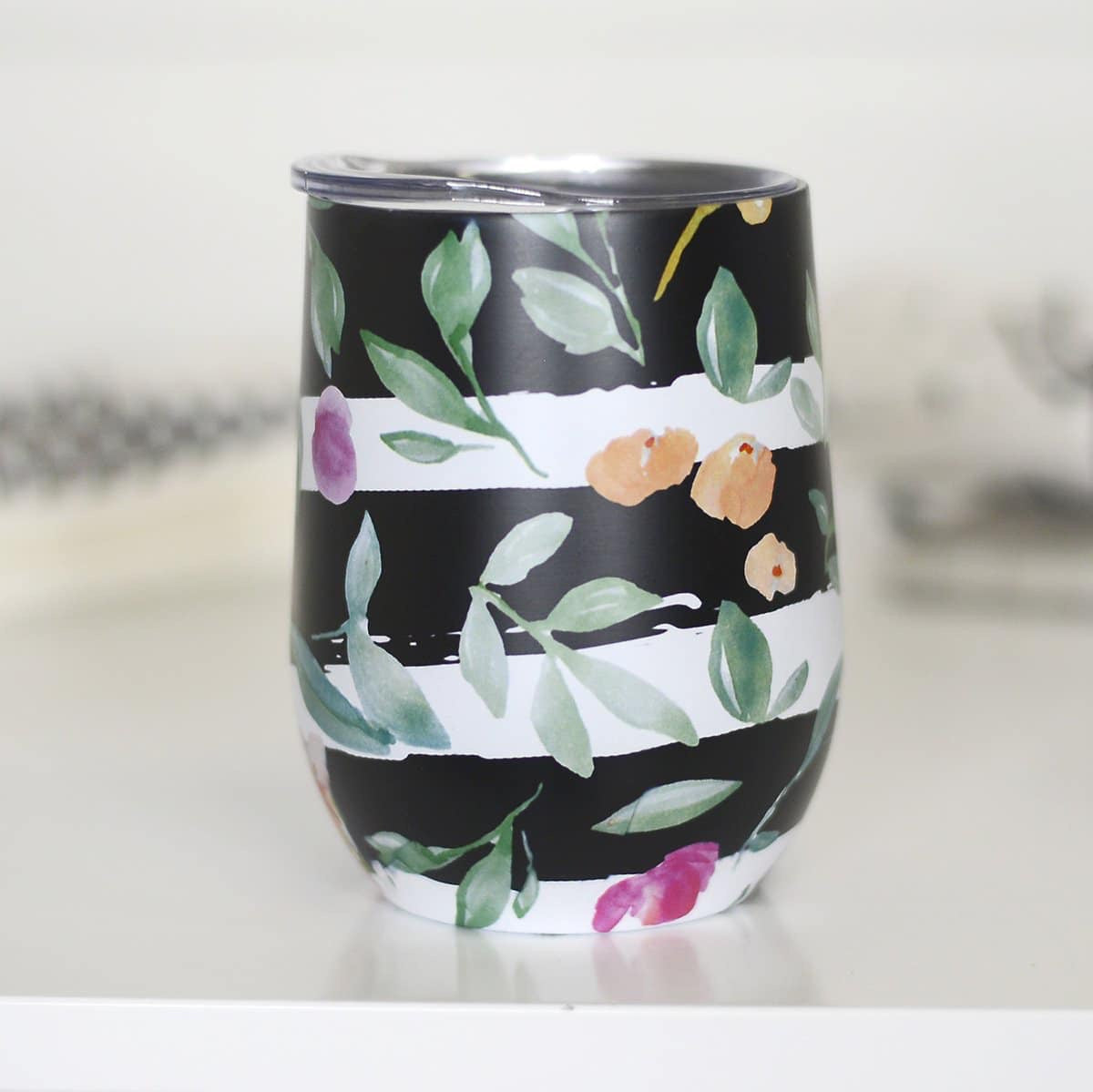 Floral Stemless Wine Cup