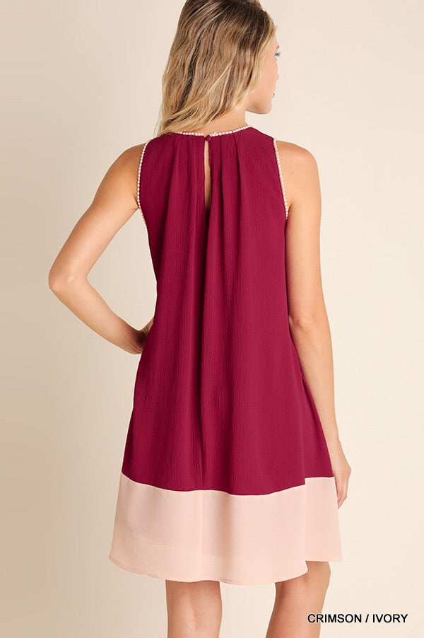 Two Tone Sleeveless Dress with Trim Detail