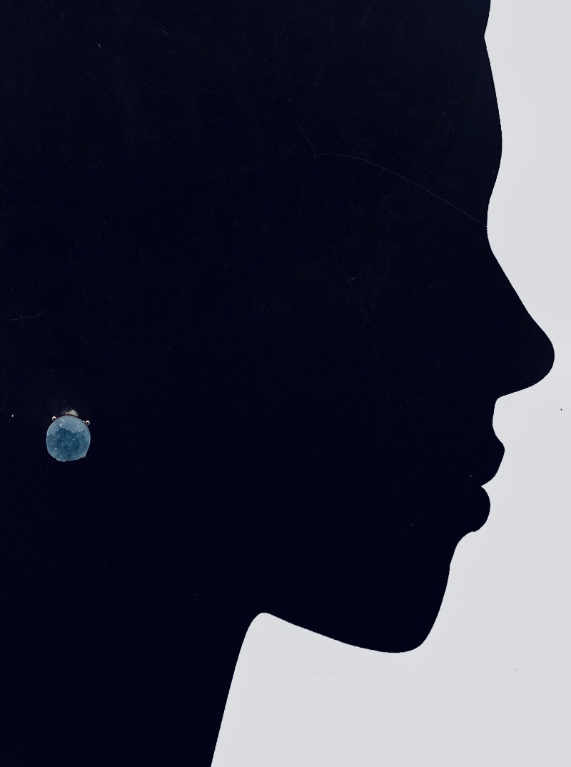 These are so beautiful! They are about 0.5” in diameter. The color is a light blue grey! It’s so stunning in the gold setting!